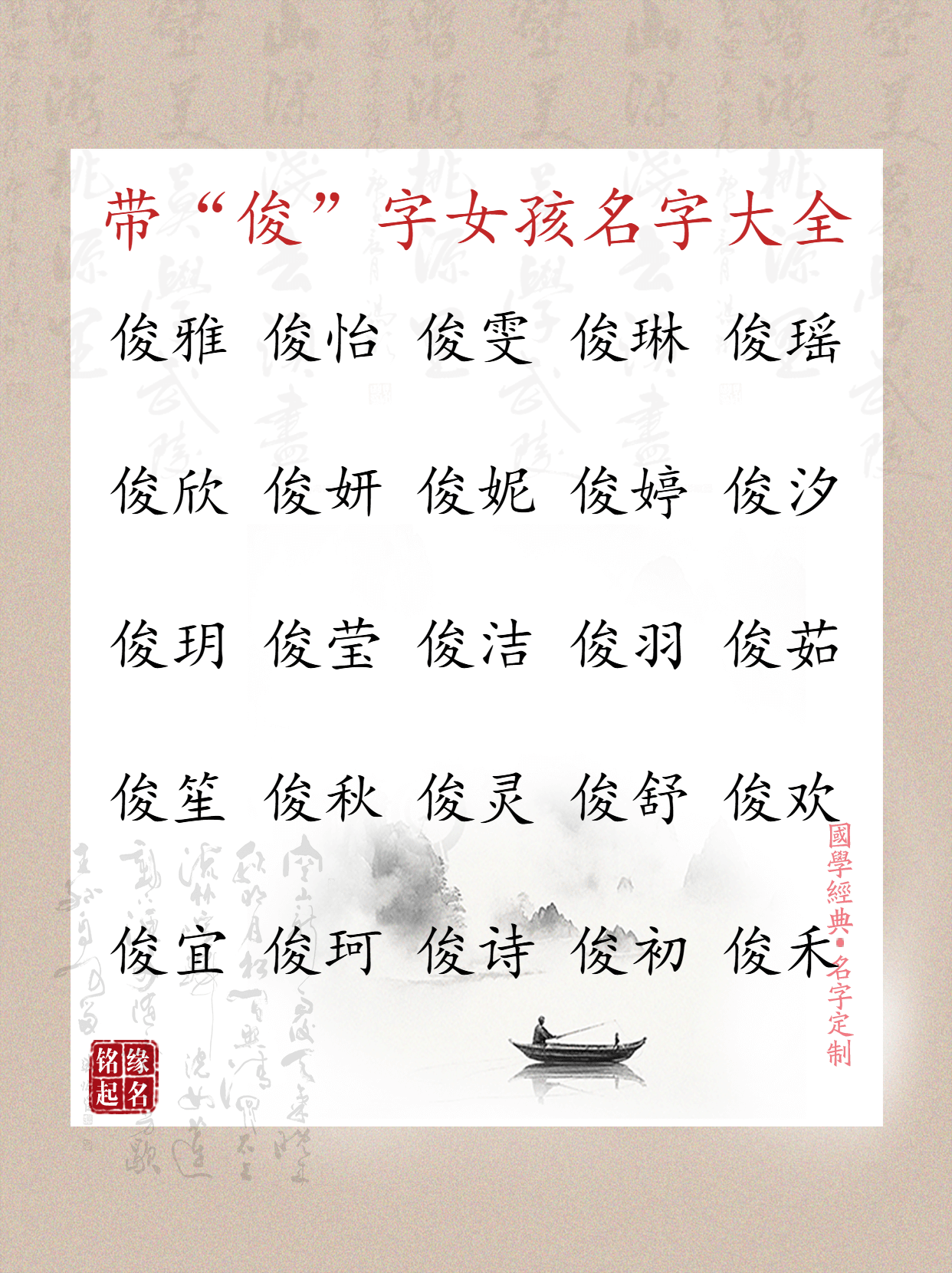 ### 带“俊”字的女孩名字